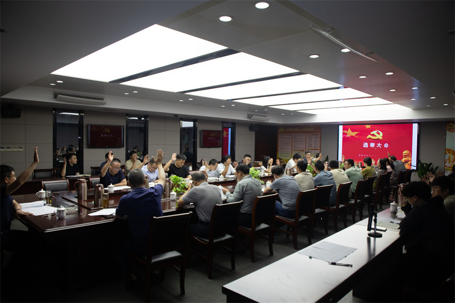 在莊嚴肅穆的國歌聲中,換屆選舉環節正式開始。會議宣讀了集團黨委關于同意華發黨總支召開黨員大會進行換屆選舉及候選人名單的批復,會議審議并通過了《籌備工作報告》、《中共江蘇華發裝飾有限公司總支委員會選舉辦法》、候選人名單、監票人及計票人名單。隨后,大會嚴格按照選舉程序,以無記名投票、差額選舉的方式,進行了現場投票。經公正計票,選舉產生陳明、朱崢光、朱明星、趙宏貴、李紅雨、徐家匯、顏吉利等7位同志為新一屆黨總支委員會委員。